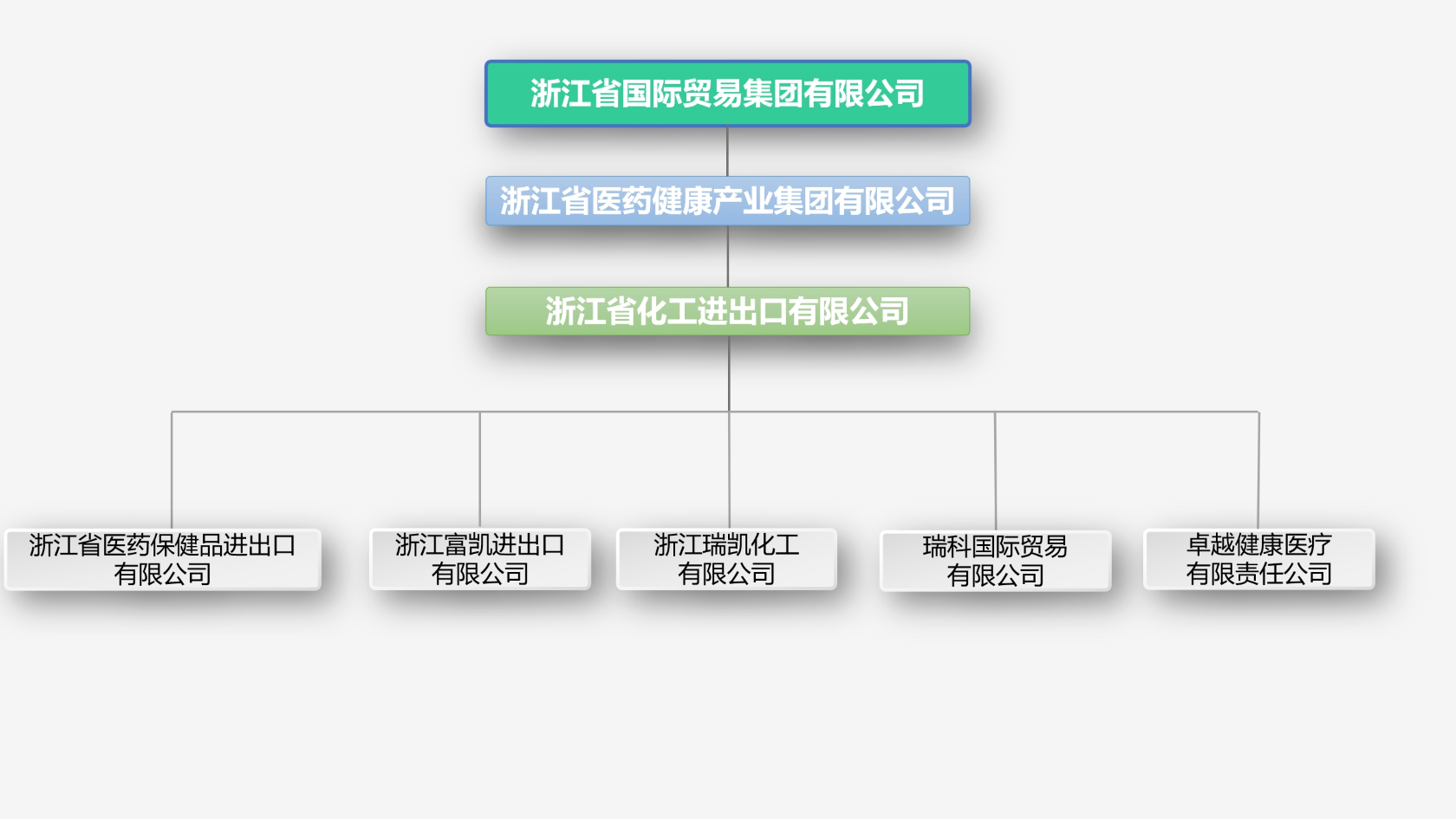 公司注冊資本1.29億元人民幣,共有員工320余人,下設綜合辦公室、黨委組織部(人力資源部)、財務部等7個職能部室和17個業務部門,擁有浙江省醫藥保健品進出口有限責任公司、浙江瑞凱化工有限公司、浙江富凱進出口有限公司、瑞科國際貿易有限公司(香港)、卓越醫療健康有限責任公司(印度尼西亞)等境內外全資子公司9家,駐越南辦事處1個,并參股經營浙江奧托康制藥股份有限公司(持股比例10%)
