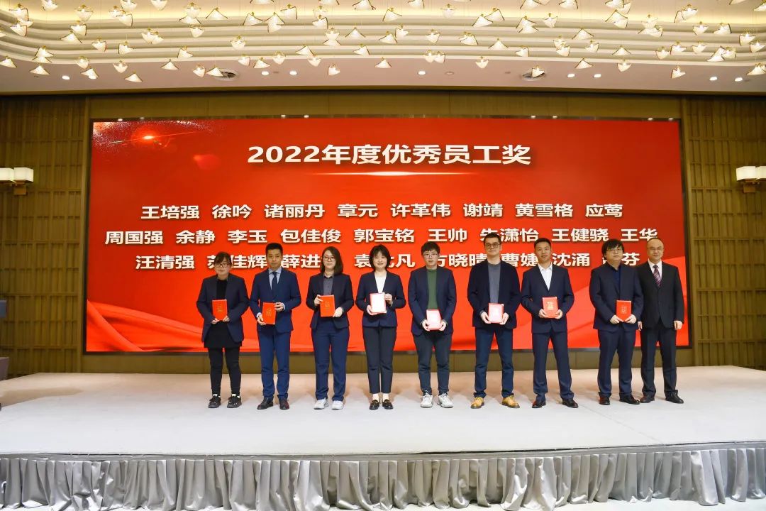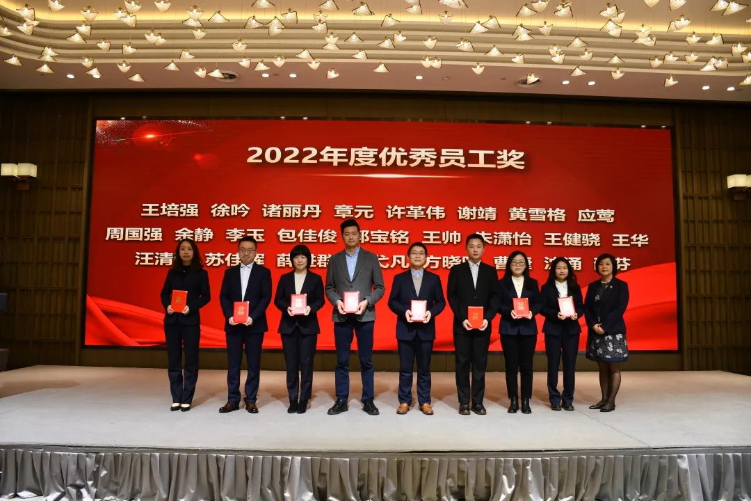 黨委副書記、總經理王芬宣讀《中共浙江省國際貿易集團有限公司委員會關于表彰省國貿集團2022年度先進集體和個人貢獻獎的決定》和《浙江省化工進出口有限公司關于表彰2022年度先進集體及個人的決定》文件,隨后對獲獎人員進行了表彰。